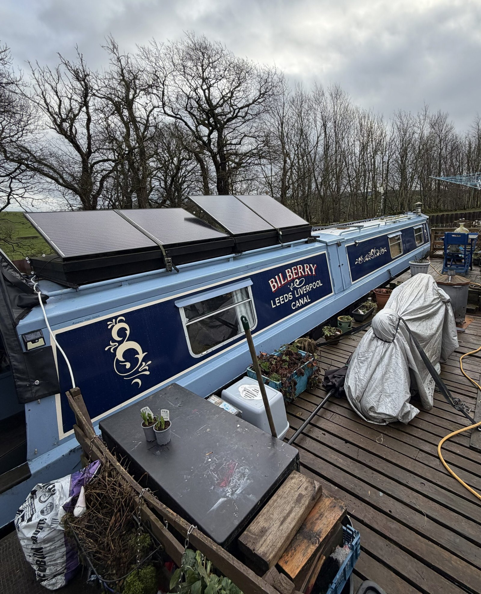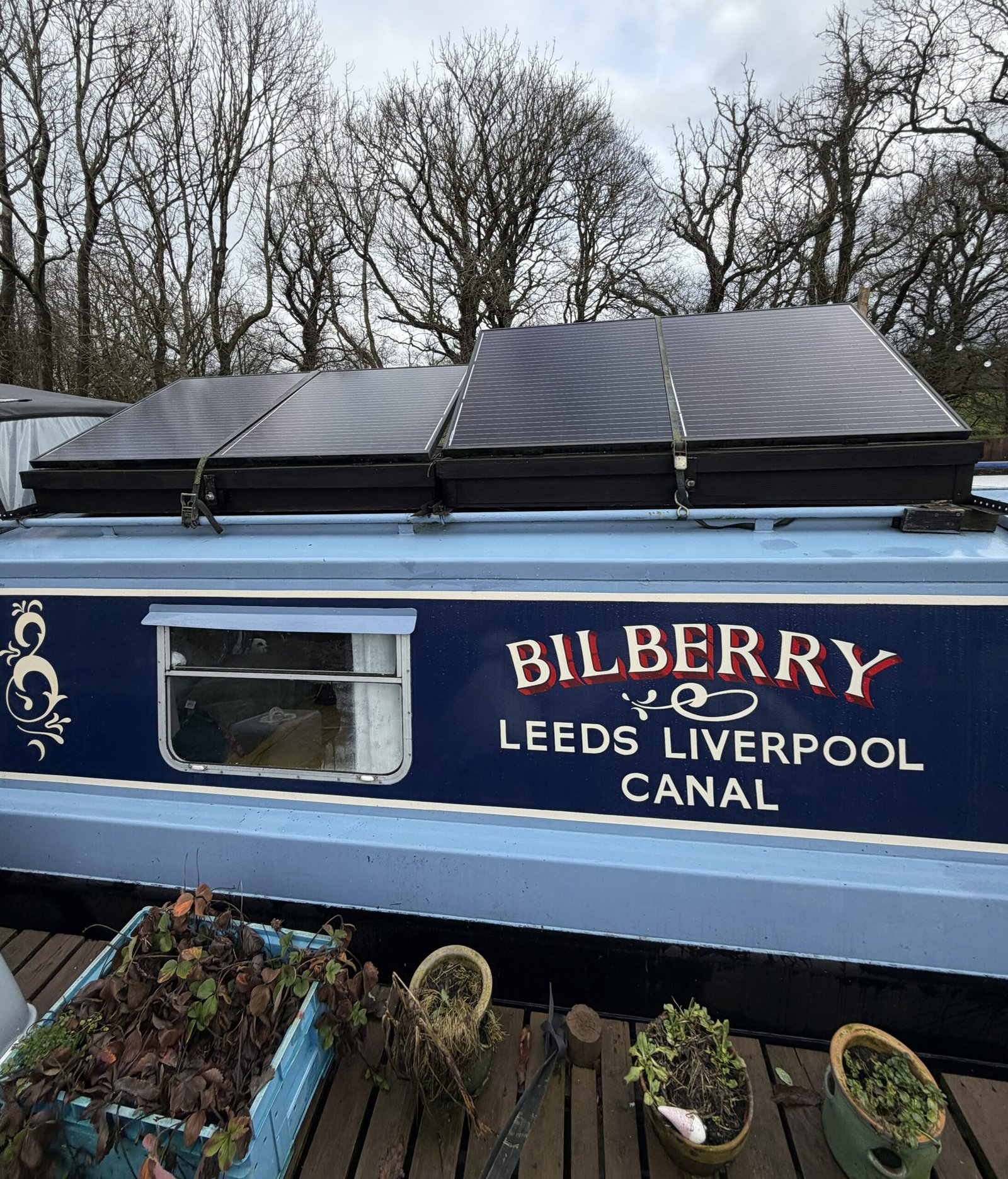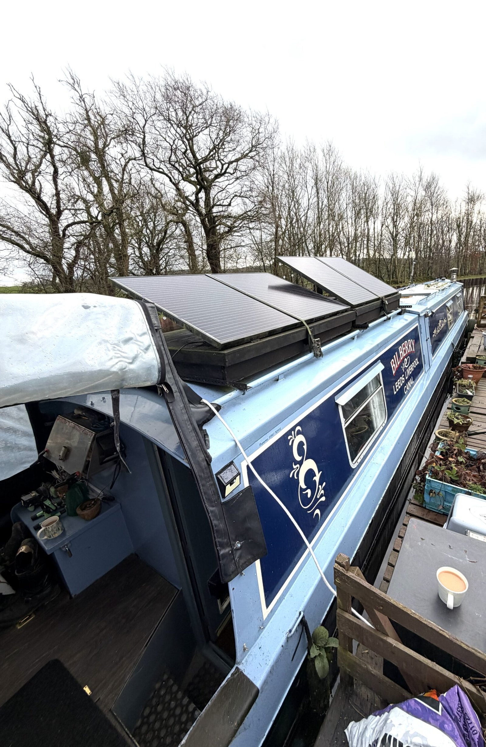 She has a reliable BMC 1.8 engine which is serviced regularly by the owner (engineer).Also Bilberry is equipped with 3 – 350w solar panels, Epever solar charge controller and a 3kw inverter charger. USB charger point.