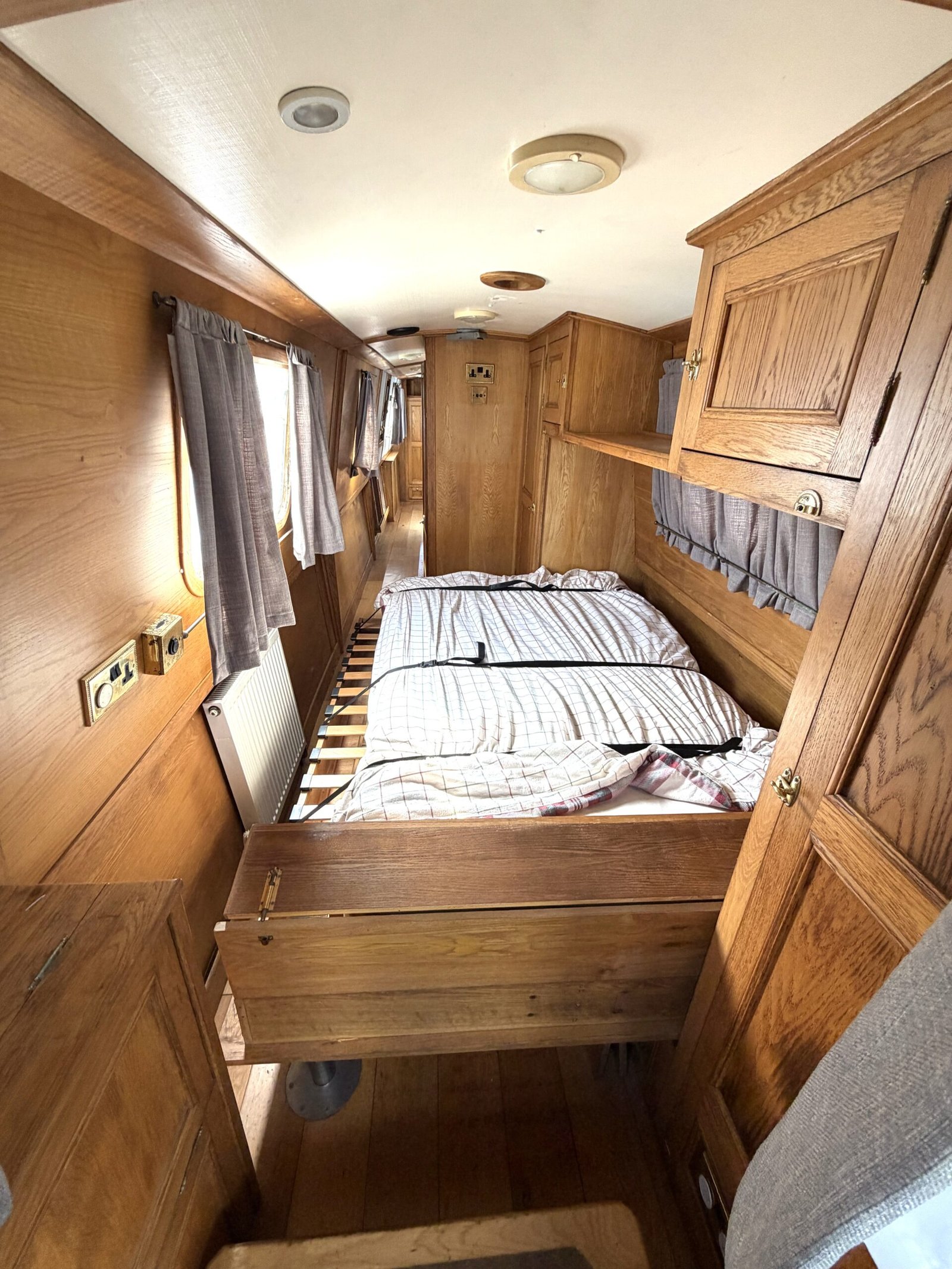 Bedroom: Drop down/lift up bed giving good access to the bow, wardrobes, cupboards, radiator, doors to the bow.