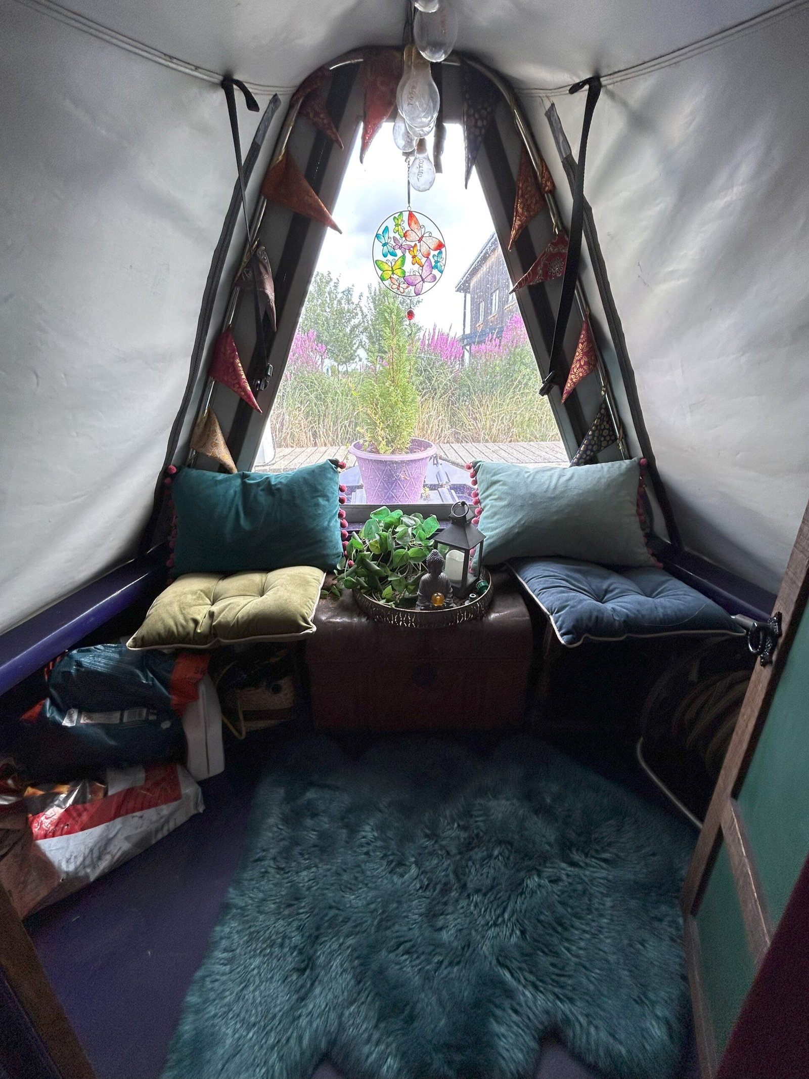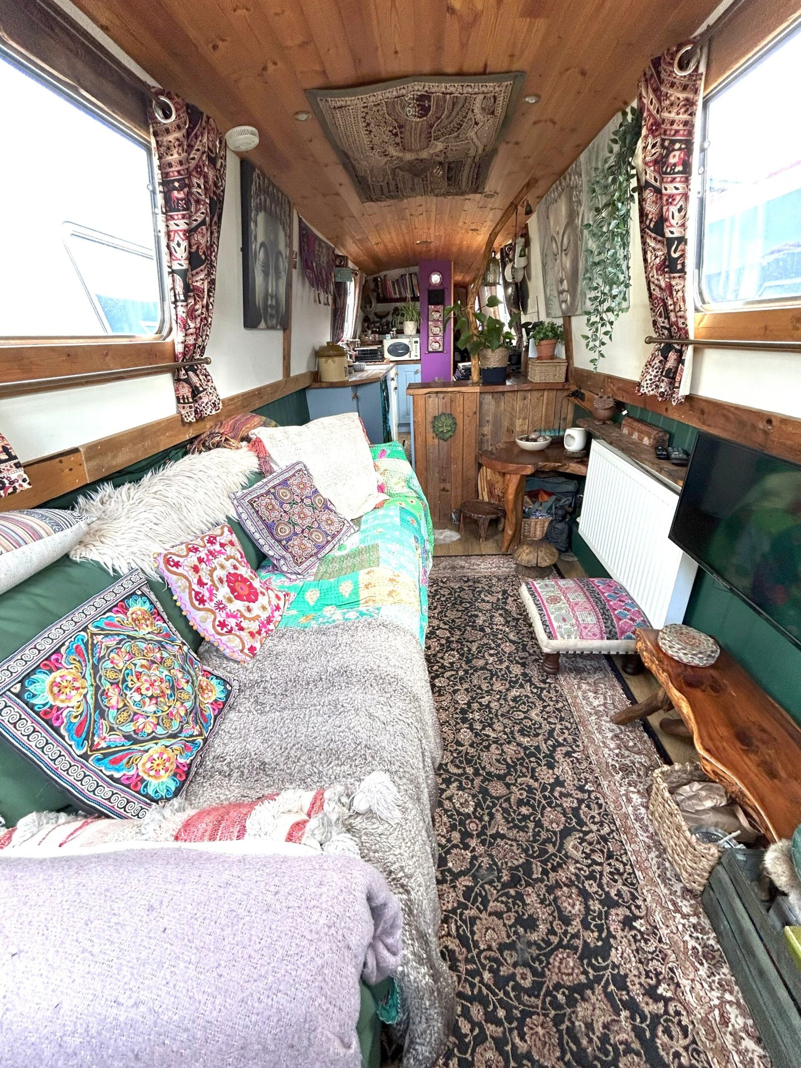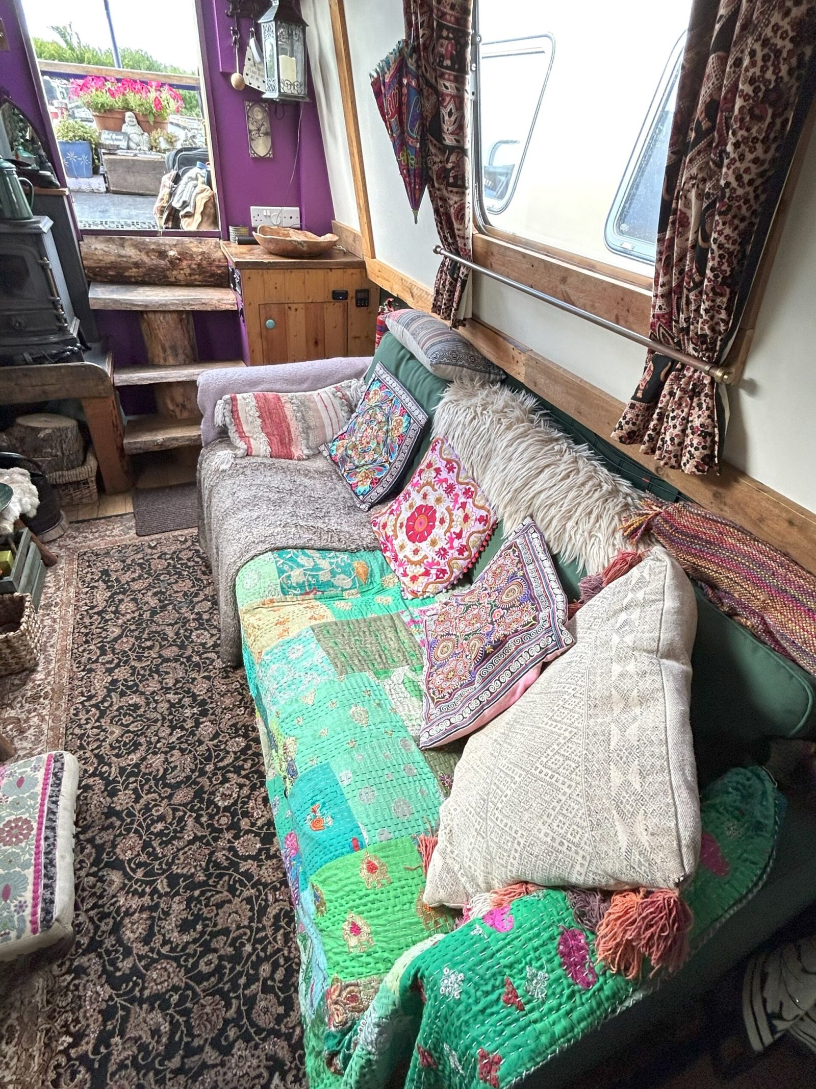 Dreamcatcher is a lovely quirky 55ft Cruiser Stern. She has a delightful bohemian ambience and she oozes tranquility and calm in a reverse layout.