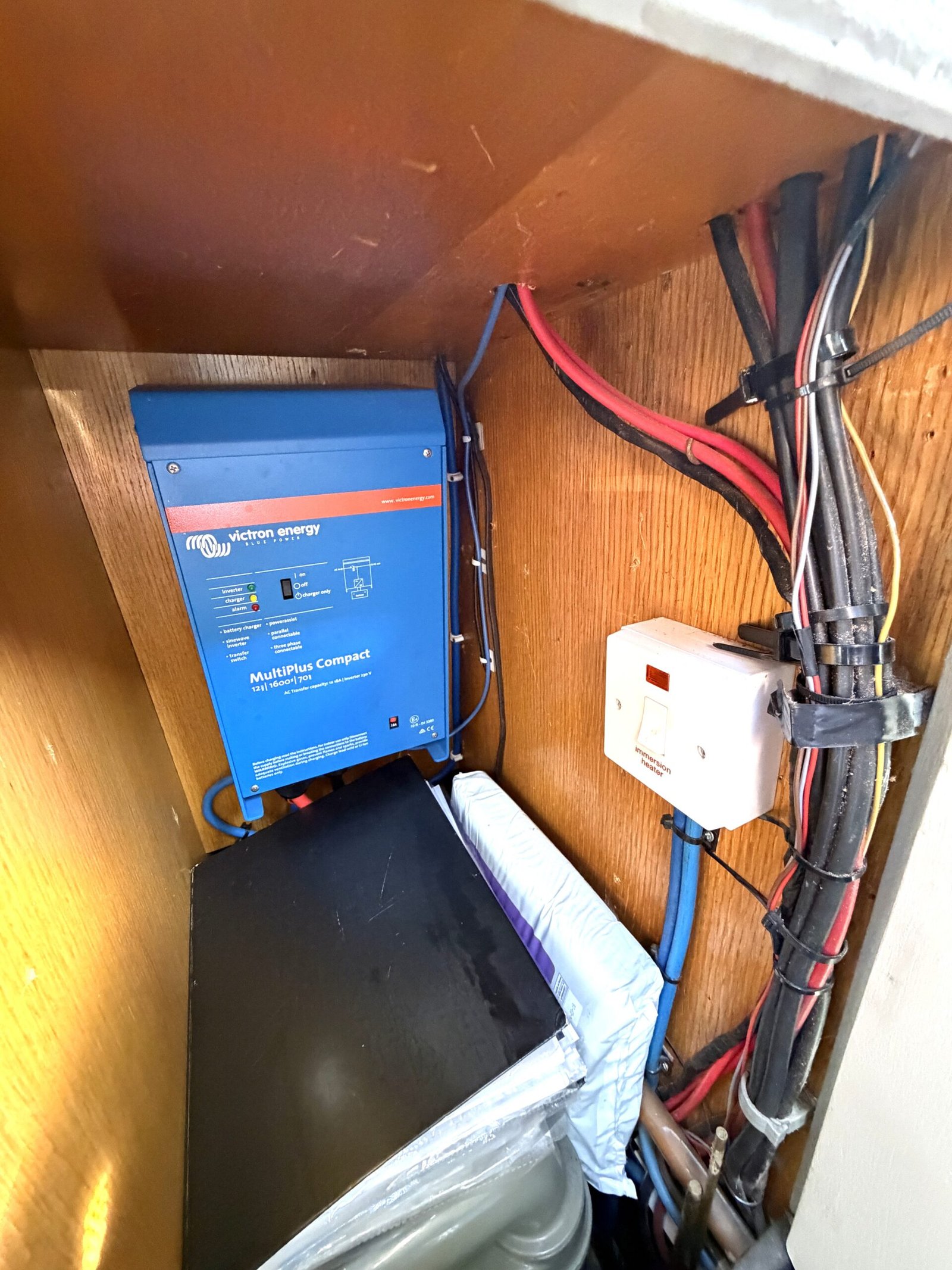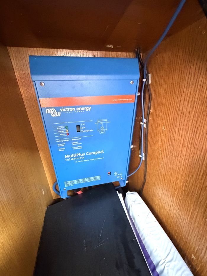 | Electrics | charger (New April 12v/240v, Victron Multiplus Compact 1600w inverter/2023), Victron Bluetooth Smart shunt(New 2023), solar panel, solar controller, Victron Connect APP/software installed and regularly updated, Sterling Zinc Saver galvanic isolator, 1.2kw generator. |
