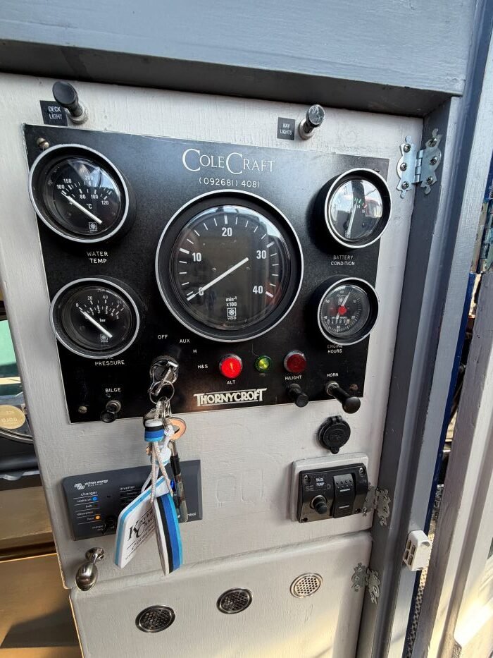 | Addition Information & Items | New stainless steel chimney November 2022, new water pump 2022, new automatic bilge pump June 2022, new oil pressure sender & oil sump pump April 2023, radiators flushed & cleaned & new header tank April 2022, new radiator valves October 2023. Linksey wifi router, The Poynting 4G-XPOL-A0001 cross polarised 4G Omni LTE antenna, Pram hood, cratch cover, fire extinguishers, buoyancy aid, fire blanket, boat hook, anchor, navigation lights, boat hook, boarding plank, hammer, windlass, fenders, shoreline leads, |