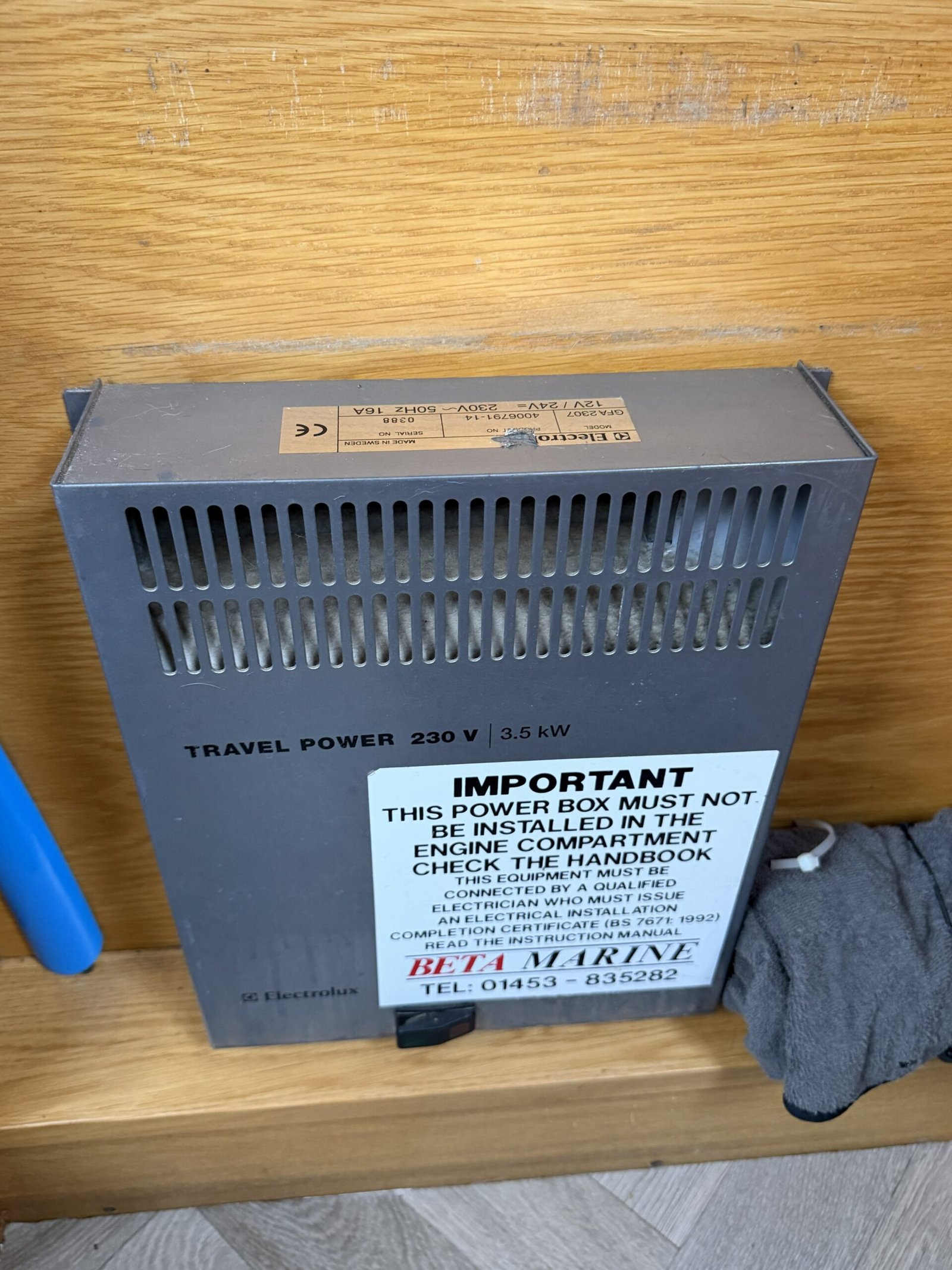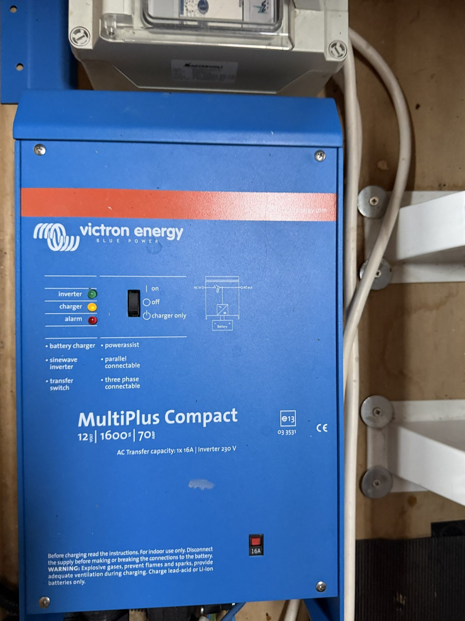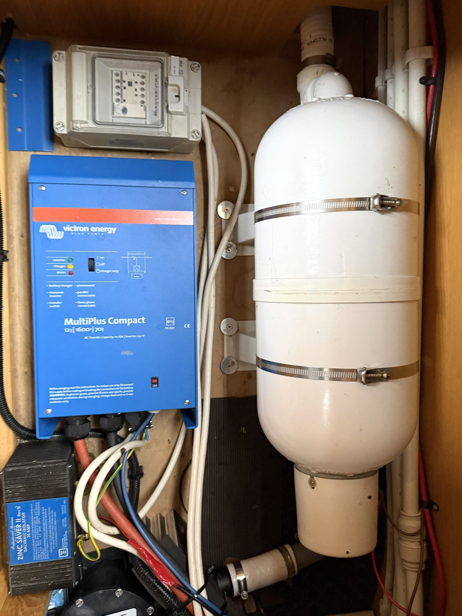 | Electrics | 12v/240v, Victron Energy Multiplus 1600w, Electrolux 3.5kw Travel Power Pack, galvanic isolator |